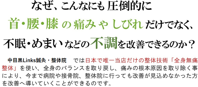 慢性的になるのを防ぐため、中目黒駅徒歩1分「リンクス鍼灸・整体」で根本から改称しませんか?