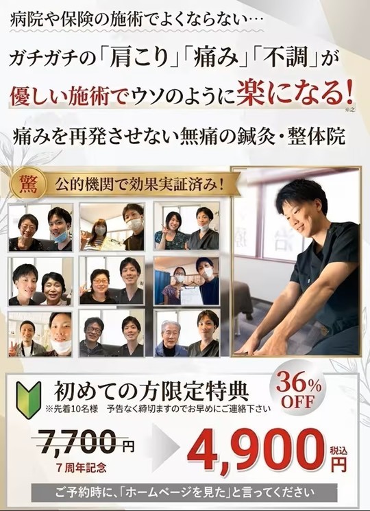 | 検査料+施術 | 通常7,700円 ⇒4900円 |