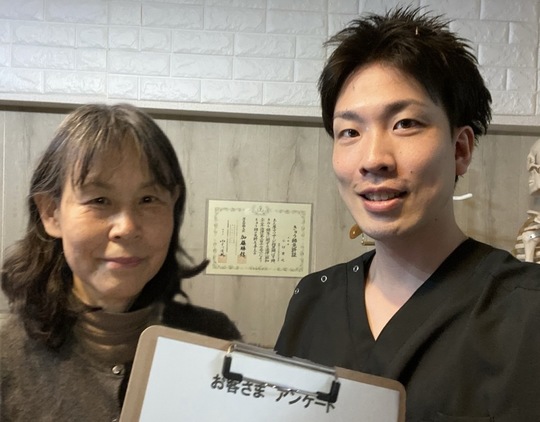 本当にソフトな施術でビックリしました。回を重ねるごとに痛みがなくなり、身体が楽になりました。施術を受けるたびに家でできるエクササイズがとてもよかったです。